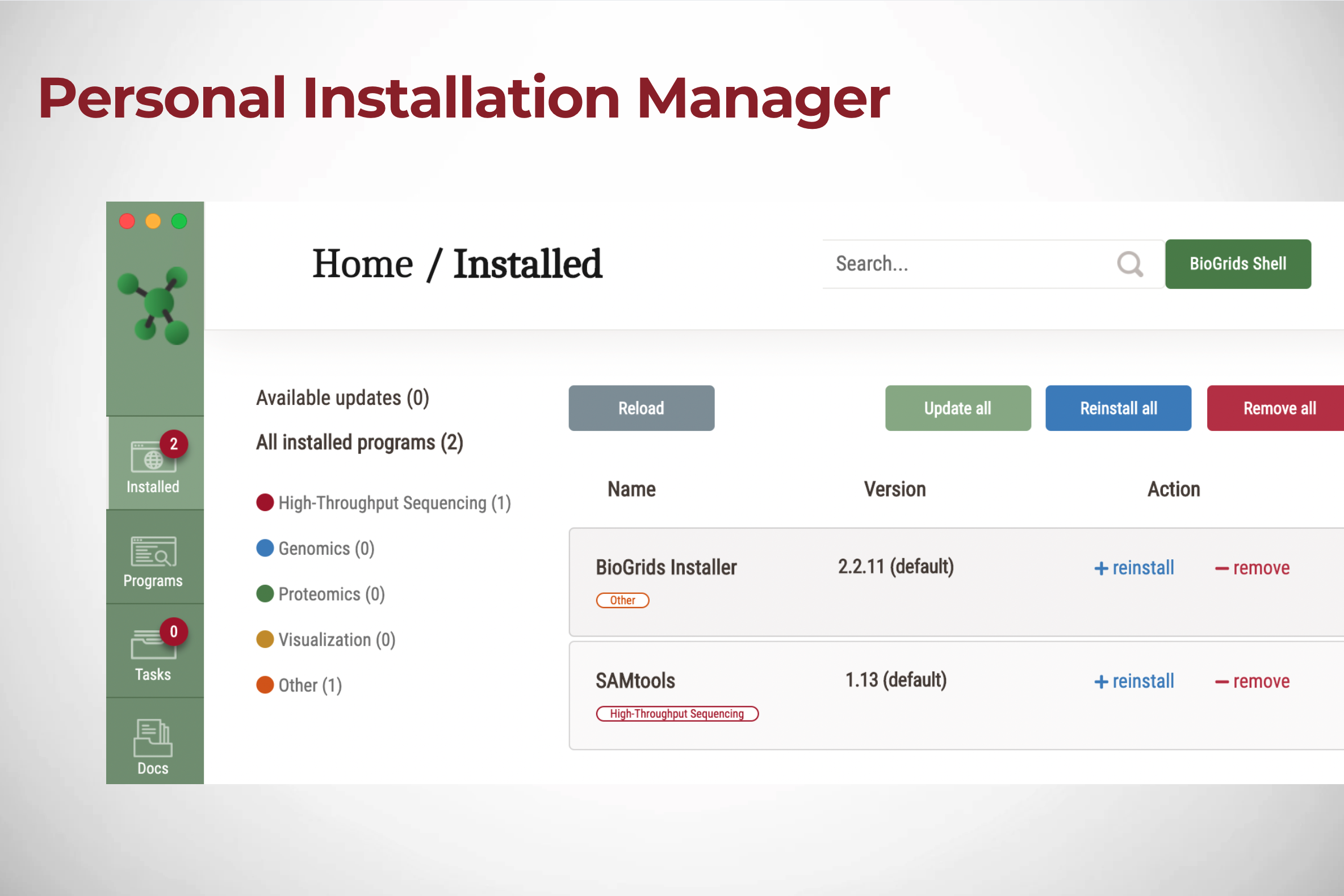 For SBGrid users who are already familiar with the SBGrid software installation platform, members may opt-in in to include the BioGrids software stack in their installation. BioGrids in an SBGrid-style …